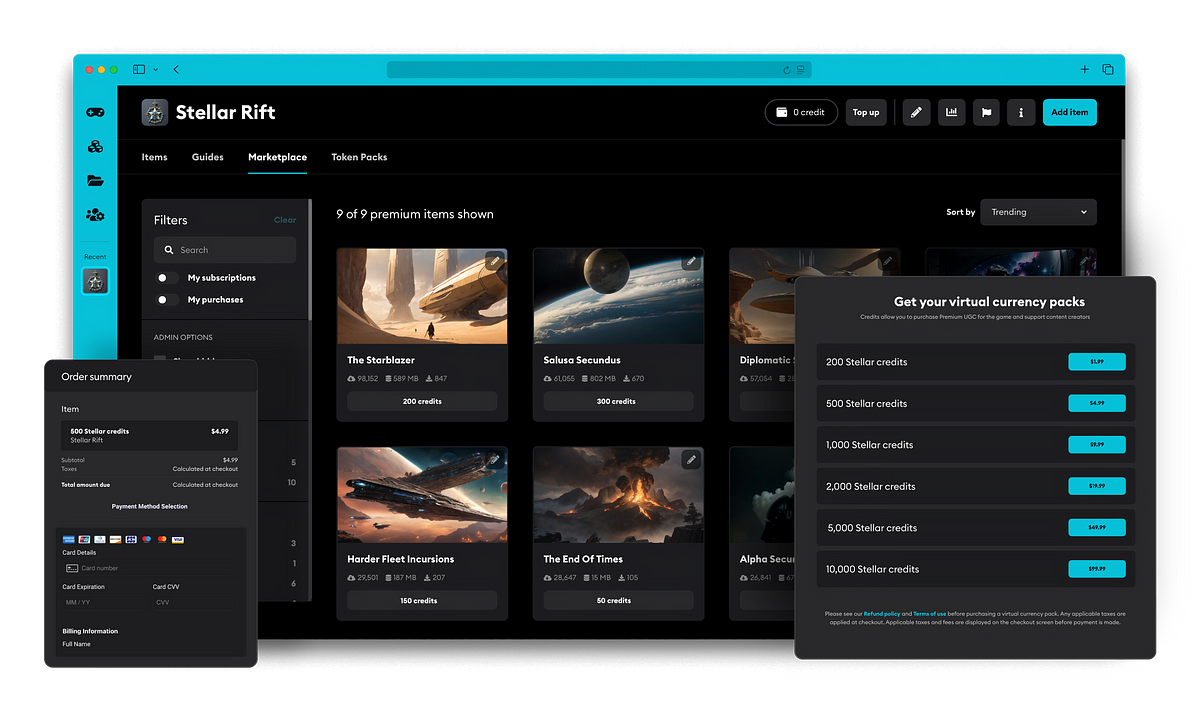 We’re convinced that business models embracing ways for content creators to expand and professionalize their work will be instrumental in the growth of a next generation of games. Some giants like Roblox or Fortnite have paved the way in the field, and we’re happy to be delivering a flexible solution that allows any game developer to explore the potential of UGC monetization for their games, on their own terms. Whether you’re aiming at developing your own creator economy and have it central to your plans, or want to explore its potential as a support element in a more traditional business model, Marketplace will offer you robust, safe and flexible solutions.